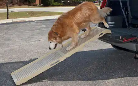 Young and old dogs alike can have a difficult time getting in and out of bathtubs. Because soap and water create a slippery and hazardous surface, slips and falls can result in torn ligaments or even broken bones. That’s why creating a safe way for your senior dog to get in and out of the bathtub safely should be of top importance. Since the folding pet ramps are portable, you can effortlessly prop it against the bathtub before, during, and after your dog’s bath time. The non-slip surface also adds an extra level of safety for your dog. Once it is no longer in use, the ramp can quickly be wiped down for use in other parts of your home.